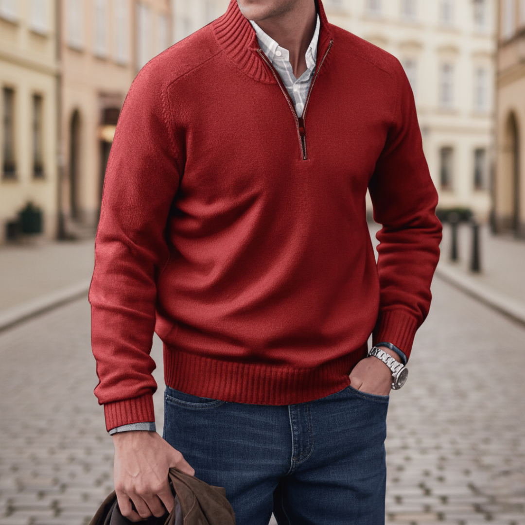 Men Quarter Zip Mock Neck Sweater