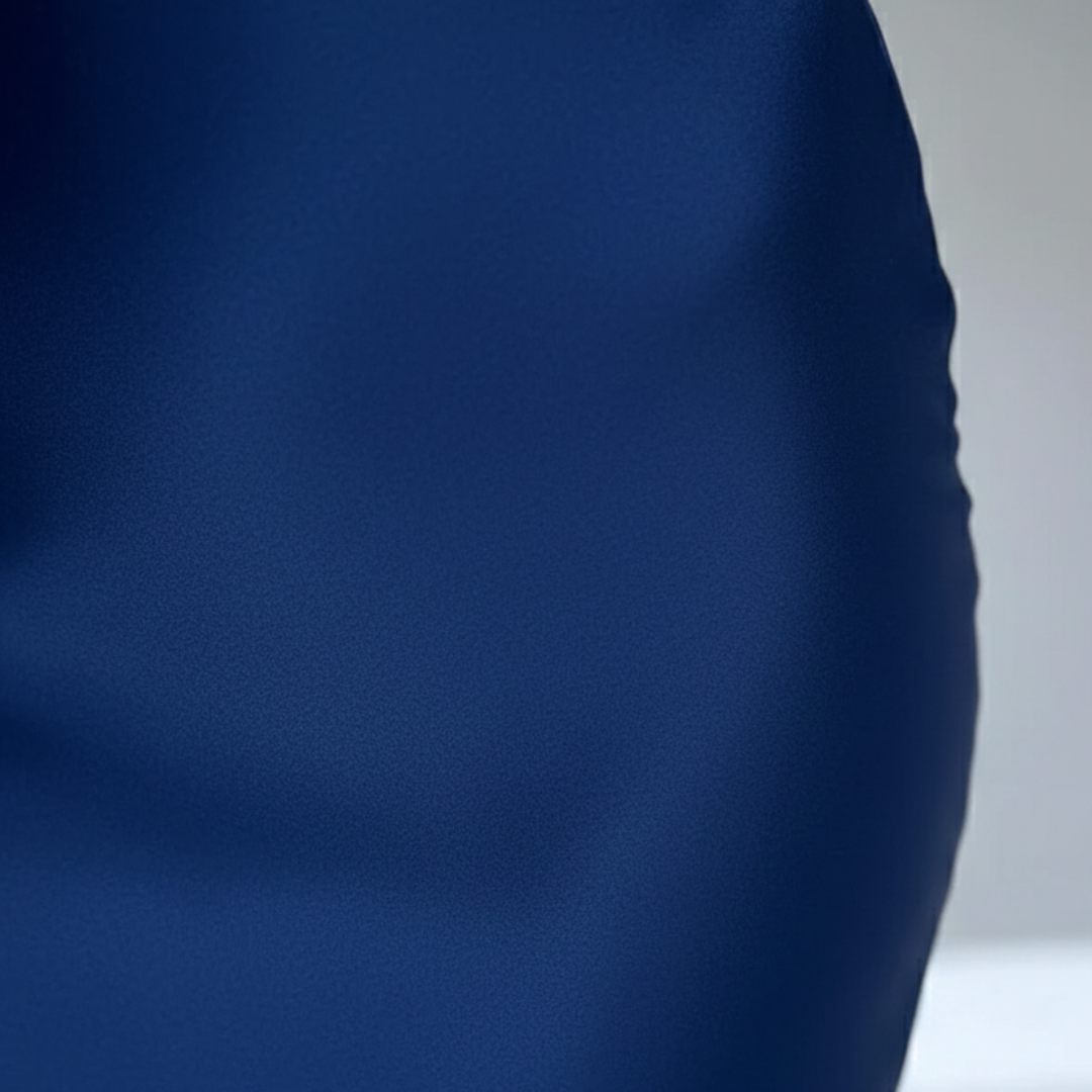 This womens navy blue maxi dress is constructed from a smooth satin fabric featuring a draped cowl neckline and adjustable spaghetti straps. The floor length garment includes a high thigh slit and a fitted silhouette designed for a formal and elegant appearance at evening events.